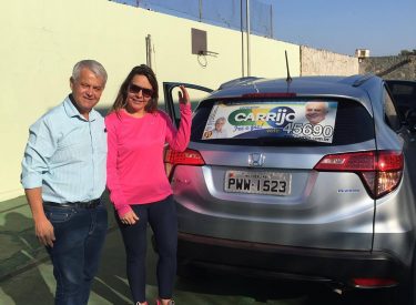 E hoje pela manhã recebi visita de uma amiga que me presenteou colocando nosso adesivo no carro dela. Vamos juntos rumo à vitória!