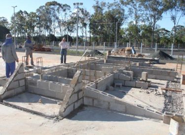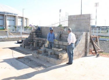Os obstáculos feitos de alvenaria já estão sendo montados, substituído os de madeira que existiam no local.