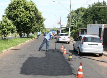 O trabalho de recuperação asfáltica, realizado pela Secretaria Municipal de Obras, é executado diariamente e ...