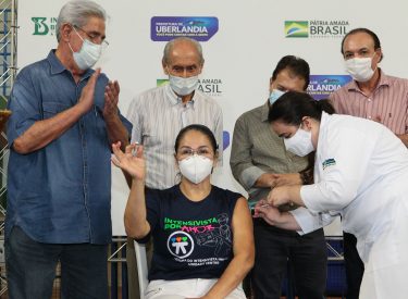 ENFERMEIRA QUE ATUA NO ANEXO DO HOSPITAL MUNICIPAL, FOI A PRIMEIRA PESSOA A SER IMUNIZADA. NESTA 1ª FASE