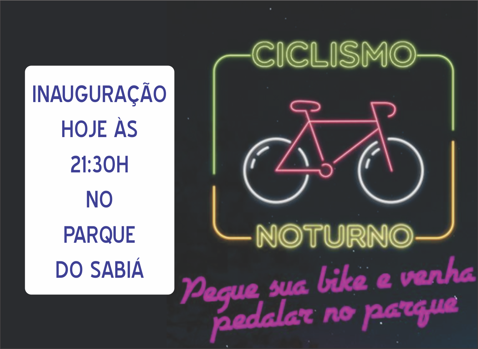 A Prefeitura de Uberlândia, por meio da Fundação Uberlandense do Turismo, Esporte e Lazer (Futel), promoverá, às 21h30 desta segunda-feira (9), o lançamento de mais um horário para a prática de ciclismo no Parque do Sabiá. A partir desta data, os ciclistas com idade mínima de 16 anos poderão andar de bicicleta no parque das 22h à meia-noite de segunda a quinta e aos sábados e domingos. Já nas sextas-feiras acontecerá o “Pedal da Família”, voltado exclusivamente a crianças acompanhadas de seus responsáveis.
