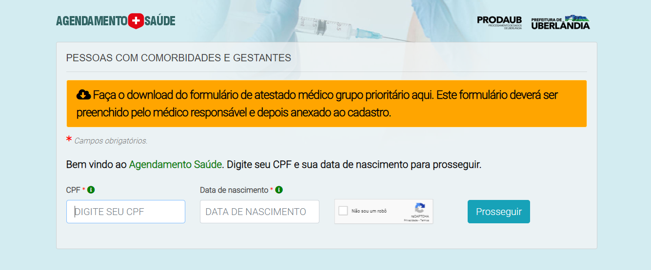 Agendamento: https://www.uberlandia.mg.gov.