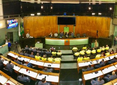 Solenidade para outorga de moção de aplauso a militares do 5º BBM, Defesa Civil, servidores do Horto Municipal e Settran