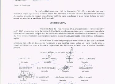 Indicação para solucionar o mau cheiro do setor Oeste e Norte de Uberlândia