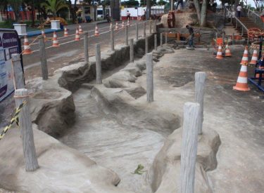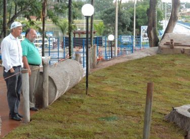 Junto a cascata com monjolo e roda d’água está sendo construído um lago próximo a entrada principal do Par ...