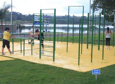 Foi instalada uma nova barra de alongamento na academia do Parque do Sabiá, a nova barra tem um apoio para os p ...