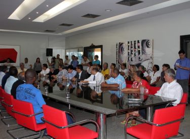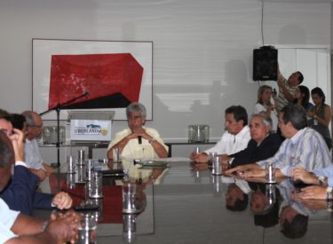 No gabinete do Prefeito Odelmo Leão para a assinatura da ordem de serviço para conclusão do asfaltamento dos bairros Morumbi e Shopping Park.