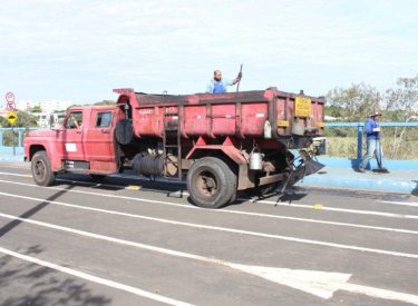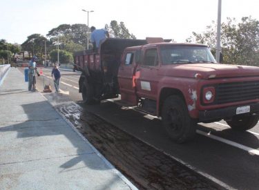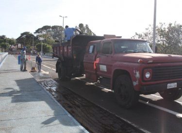 Servidores da Secretaria Municipal de Obras fizeram um trabalho de recuperação de parte do asfalto da ponte/barragem. Já as trocas das lâmpadas queimadas em torno da pista de caminhada e corrida estão sendo feitas pela Secretaria de Serviços Urbanos.