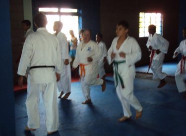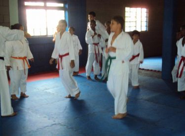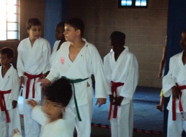 Escolinha de Karatê no Poliesportivo São Jorge. As aulas acontecem toda 3ª e 5ª das 8h às 11h.