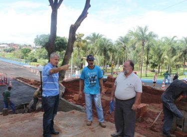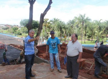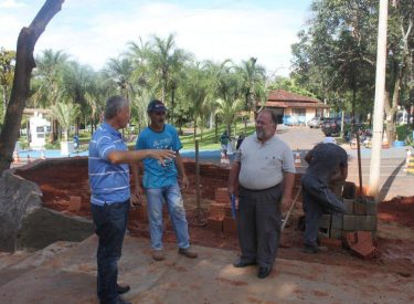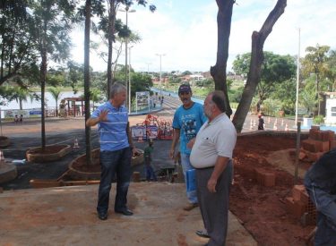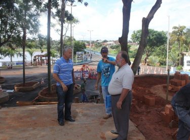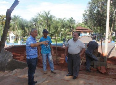 Definindo detalhes da construção da cascata na praça recanto do sabiá, com a roda dágua e monjolo.