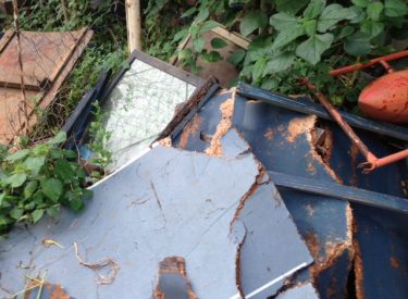 As placas informativas que estavam no Parque do Sabiá foram jogadas no meio do mato pelo diretor da FUTEL.