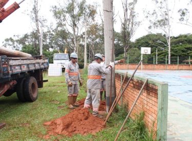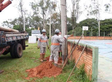 Fotos do trabalho de iluminação das quadras do Mundo da Criança