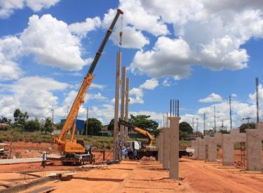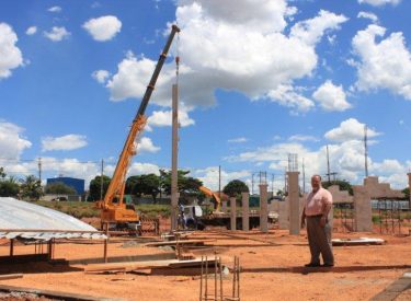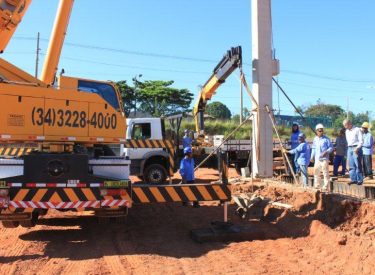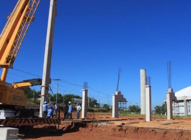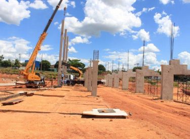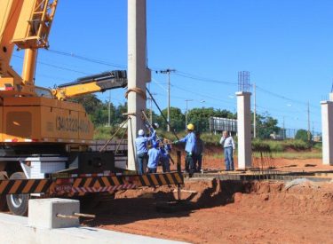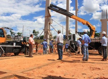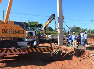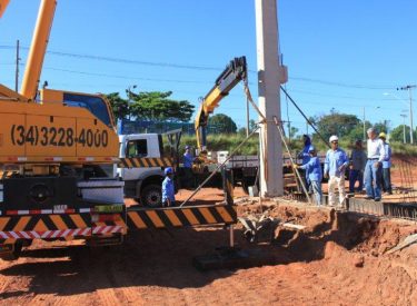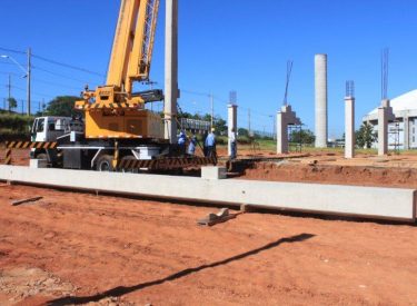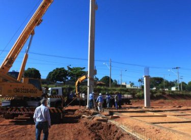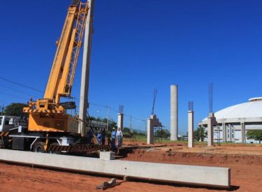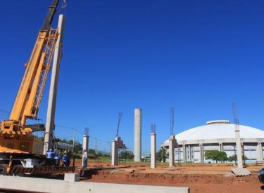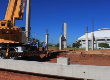 Seguindo o cronograma de construção do novo Parque Aquático de Uberlândia, que ficará ao lado da Arena Multiuso Tancredo Neves (Sabiazinho), a empresa responsável pela obra está instalando os Pilares de sustentação das arquibancadas.