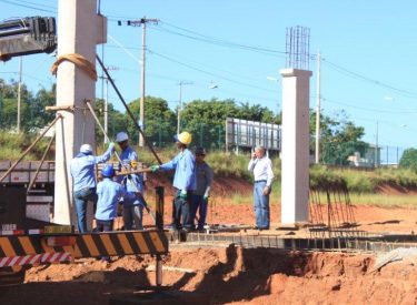 Inicio da instalações de pilares do Parque Aquático