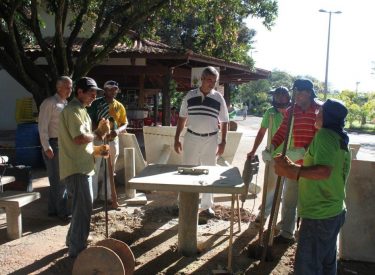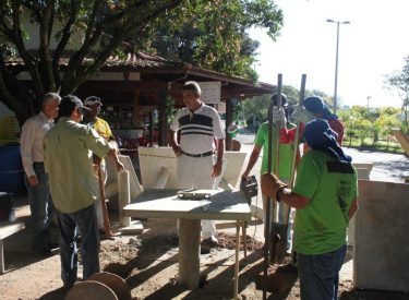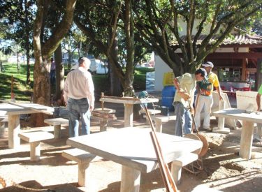 Instalação de novos bancos no Recanto do Sabiá.