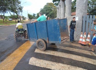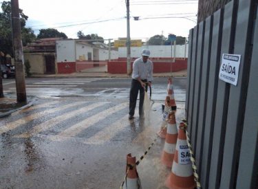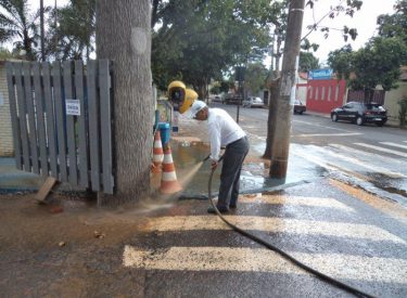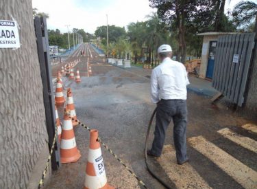 Limpeza da entrada principal do Parque do Sabiá