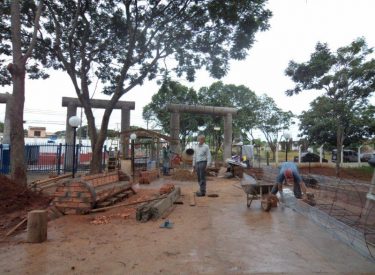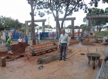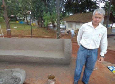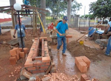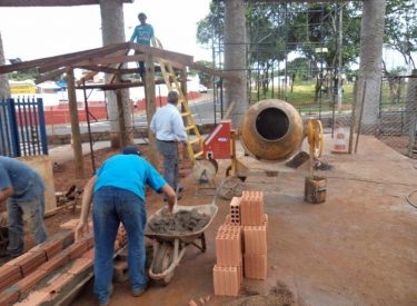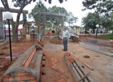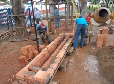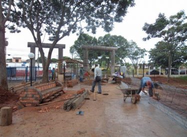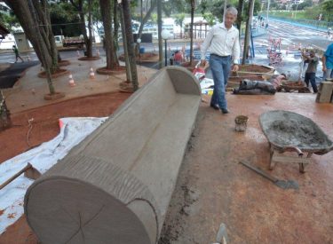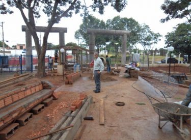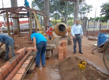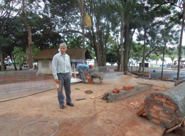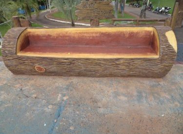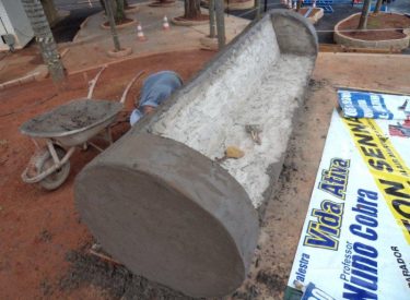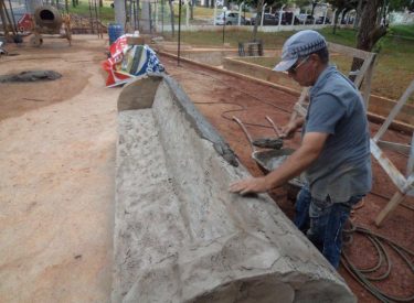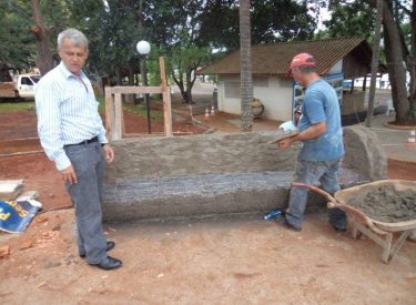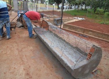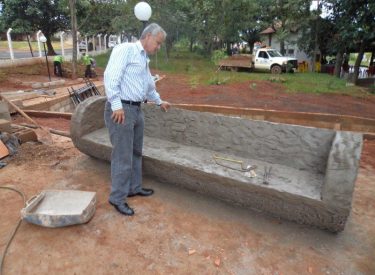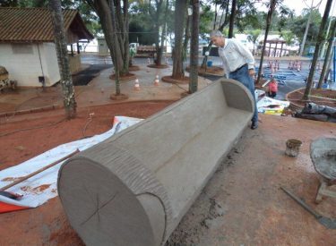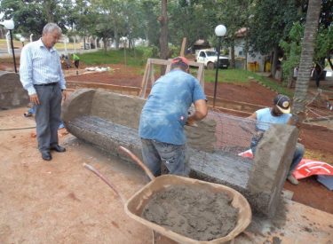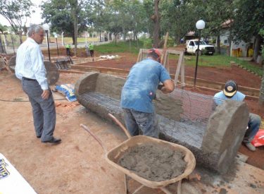 Já construímos 02 bancos em concreto com design em madeira, e estamos fazendo mais 04 bancos na entrada principal, no recanto do Sabiá.