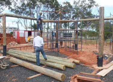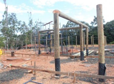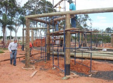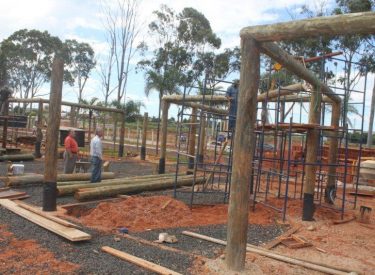 A empresa responsável pela construção da nova sede da Fundação Uberlandense do Turismo, Esporte e Lazer (Futel) já está colocando as madeiras que servirão de base do prédio.