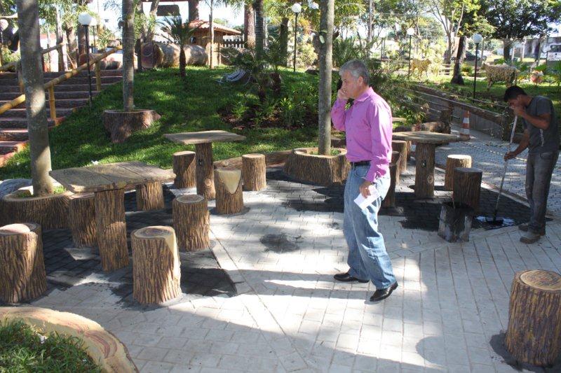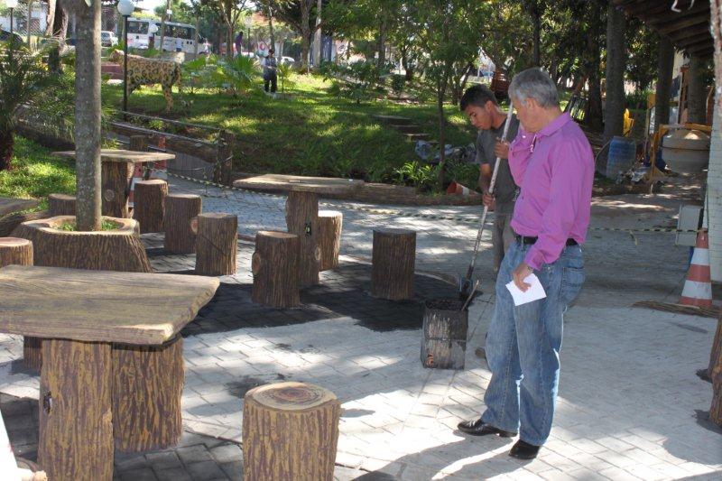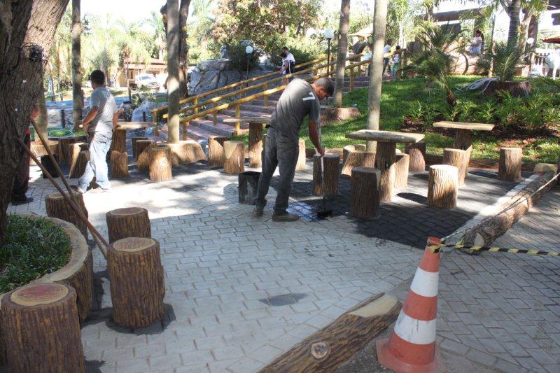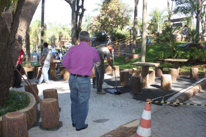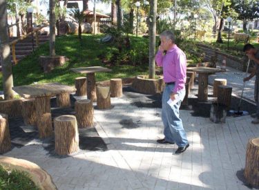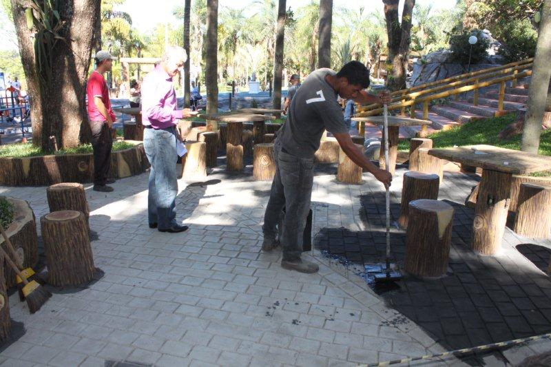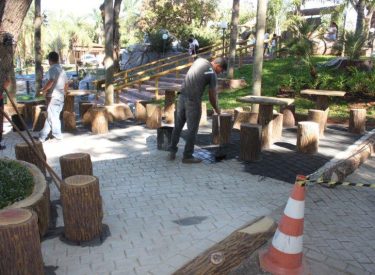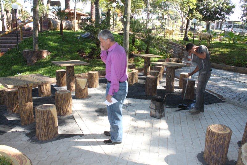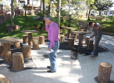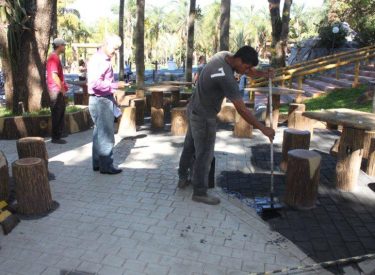 Terminando as obras do Recanto do Sabiá, a equipe do sr. Valdivino está pintando o piso do Recanto do Sabiá.