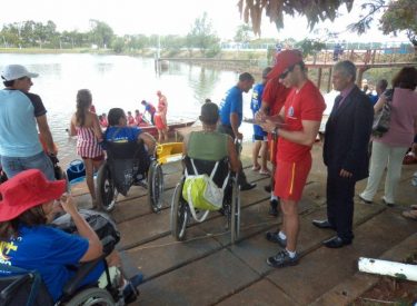 Oficiais do Corpo de Bombeiros estiveram no Parque do Sabiá promovendo o projeto Novos Horizontes, com portadores de necessidades especiais.