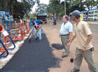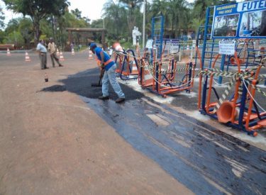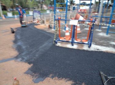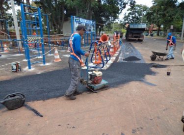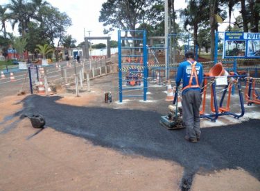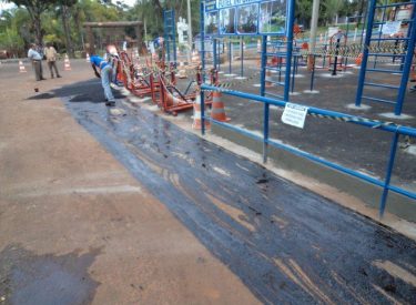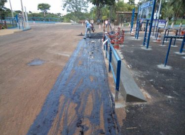 Realizamos o recapeamento da pista em frente a academia da entrada principal do Parque do Sabiá, a nova academia está sendo preparada para ser entregue aos usuários do Parque do Sabiá, e contará com vários equipamentos de academia e barras de alongamento.
