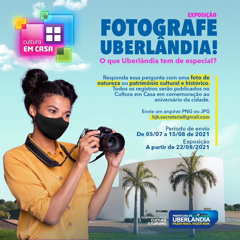 Para comemorar o aniversário de Uberlândia, a Secretaria Municipal de Cultura e Turismo, com iniciativa da Biblioteca Municipal Juscelino Kubistchek de Oliveira, abre espaço para a população presentear com o “melhor olhar”, a aniversariante que completa 133 anos no dia 31 de agosto. A grandeza da data será festejada com a campanha “Fotografe Uberlândia” com o tema “O que Uberlândia tem de especial?”.