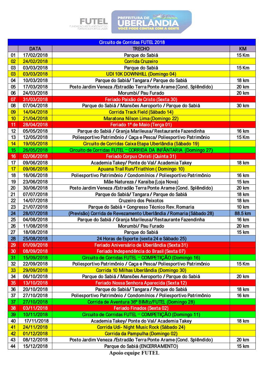 Calendário 2018 Longão Futel – Amigos Corredores do Parque do Sabiá