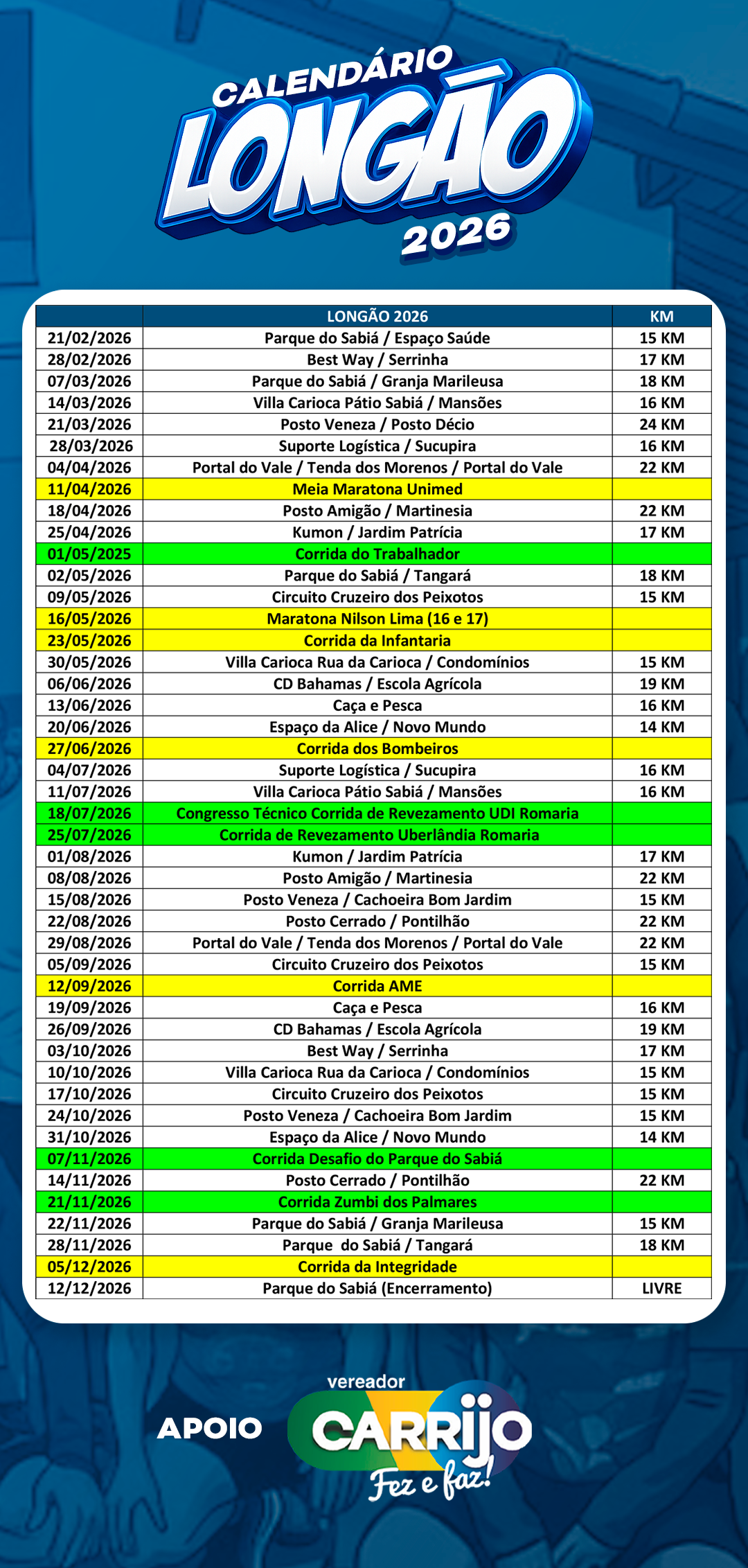 CALENDÁRIO LONGÃO 2026