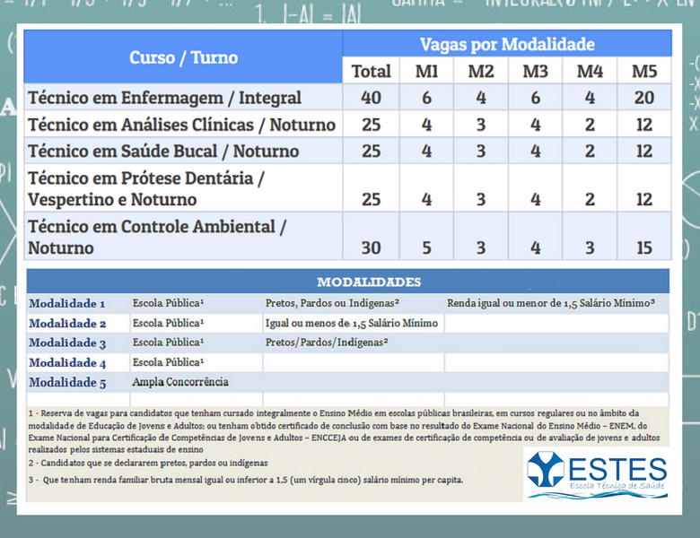 Confira no quadro abaixo a distribuição de vagas por curso e por modalidades: