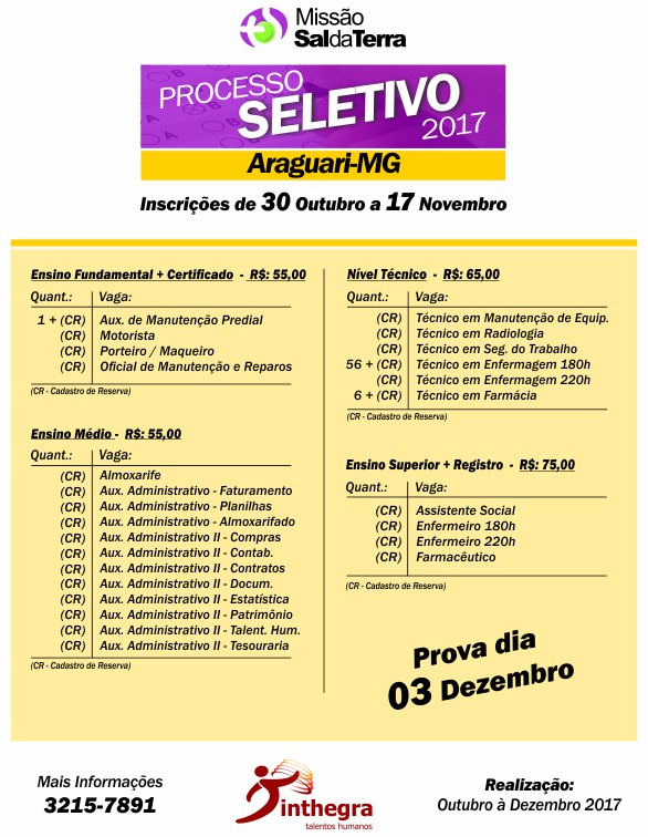 Edital Processo Seletivo – Araguari: Clique Aqui