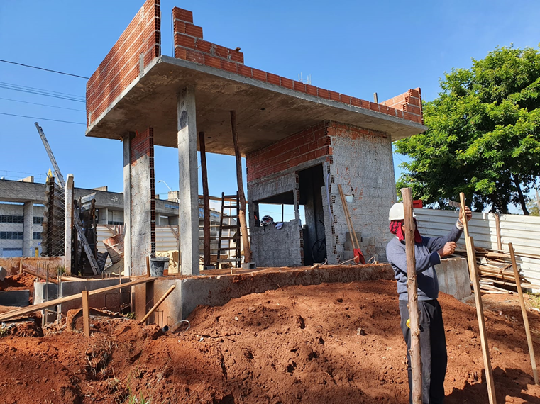 Já estão 40% concluídas as obras da portaria Jardim Sabiá, que está sendo construída no Parque do Sabiá, com recursos destinados pelo Ministério do Desenvolvimento Regional. A nova portaria terá 27,68 m2, com revestimento em porcelanato na cor mogno, piso em porcelanato, portões de acesso para pessoas com necessidades especiais, letreiro, uma catraca de entrada e uma de saída (adultas e infantis), iluminação interna e externa de LED e câmeras de segurança.