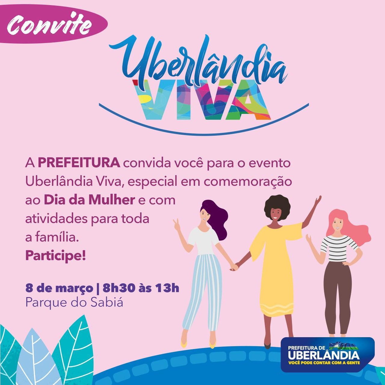 Este vai ser mais um domingo (8) especial para a população uberlandense. O Uberlândia Viva retorna suas atividades em sua 17ª edição e a Prefeitura de Uberlândia promoverá um evento temático, em homenagem às mulheres. Inúmeras atrações e serviços gratuitos serão ofertados pelas secretarias municipais no Parque do Sabiá, a partir das 8h30. (Confira a lista de ações abaixo).