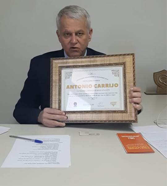 Em 2019 o vereador Antônio Carrijo é considerado novamente o parlamentar mais atuante da Câmara Municipal de Uberlândia. É o que aponta a pesquisa realizada pelo grupo PRIME PESQUISAS no período de 06 a 10 de maio de 2019.